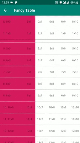 }fancyTable.adapter = SampleAdapter()The library is written based on TableFixHeaders