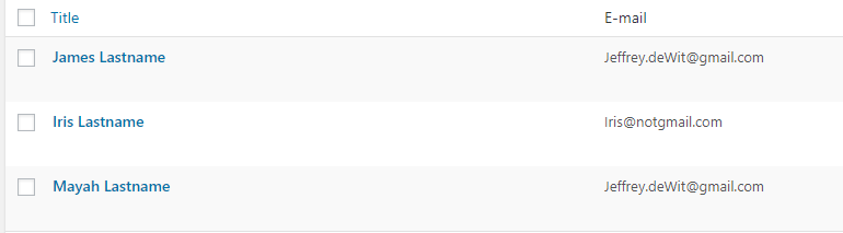 tix_privacyfield up and it will skip trying to add their name to the$attendeearray altogether. That way we'd still only display unique emails on the attendee page as before, but they won't be affected by any attendees with the same email that are set to be hidden.The simplified test case on my local looks like this, with Mayah set to be hidden: