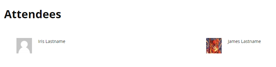 Only Mayah was being displayed on the attendee page and this needed to be changed to display James. Additionally, Iris also needed to be displayed. My thought was to hide all the children (check the "Hide from public attendees list" checkbox) and change the email address on Iris. This led to only Iris being displayed, due to the simple fact that James was being "overwritten" by first Jamie and then Mayah, who are both set to be hidden.