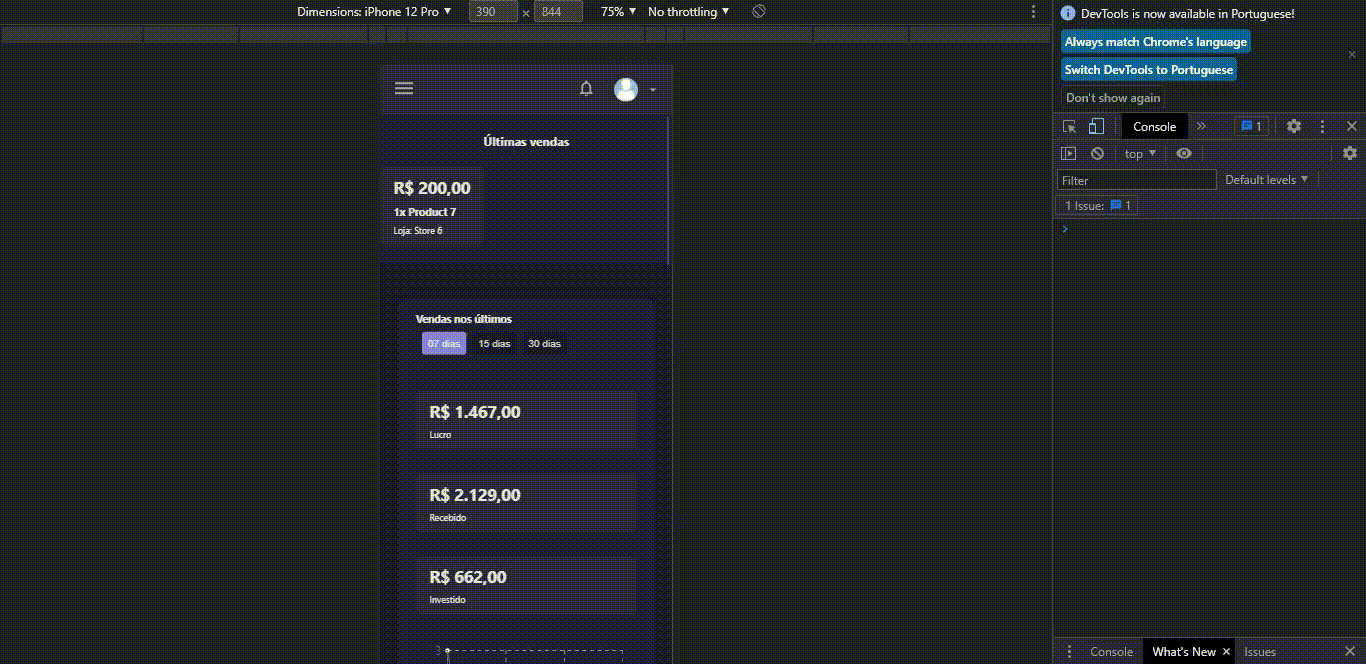 - ✅ Charts with metrics from the last 7, 15 and 30 days