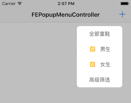 then, you can using FEPopupMenuItem initialize FEPopupMenuController , support text or text&icon (icon size 15x15 point)