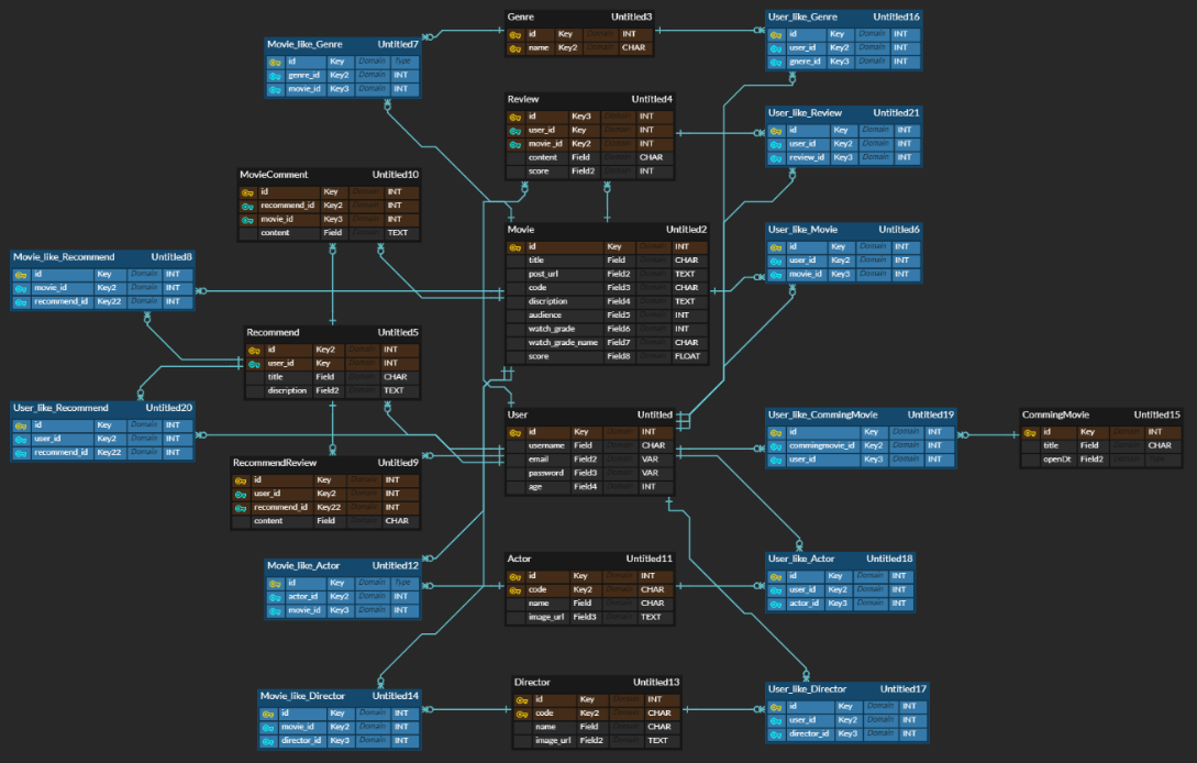 - Movie, Actor, Director, Recommend + 관련 Detail 기능 구현