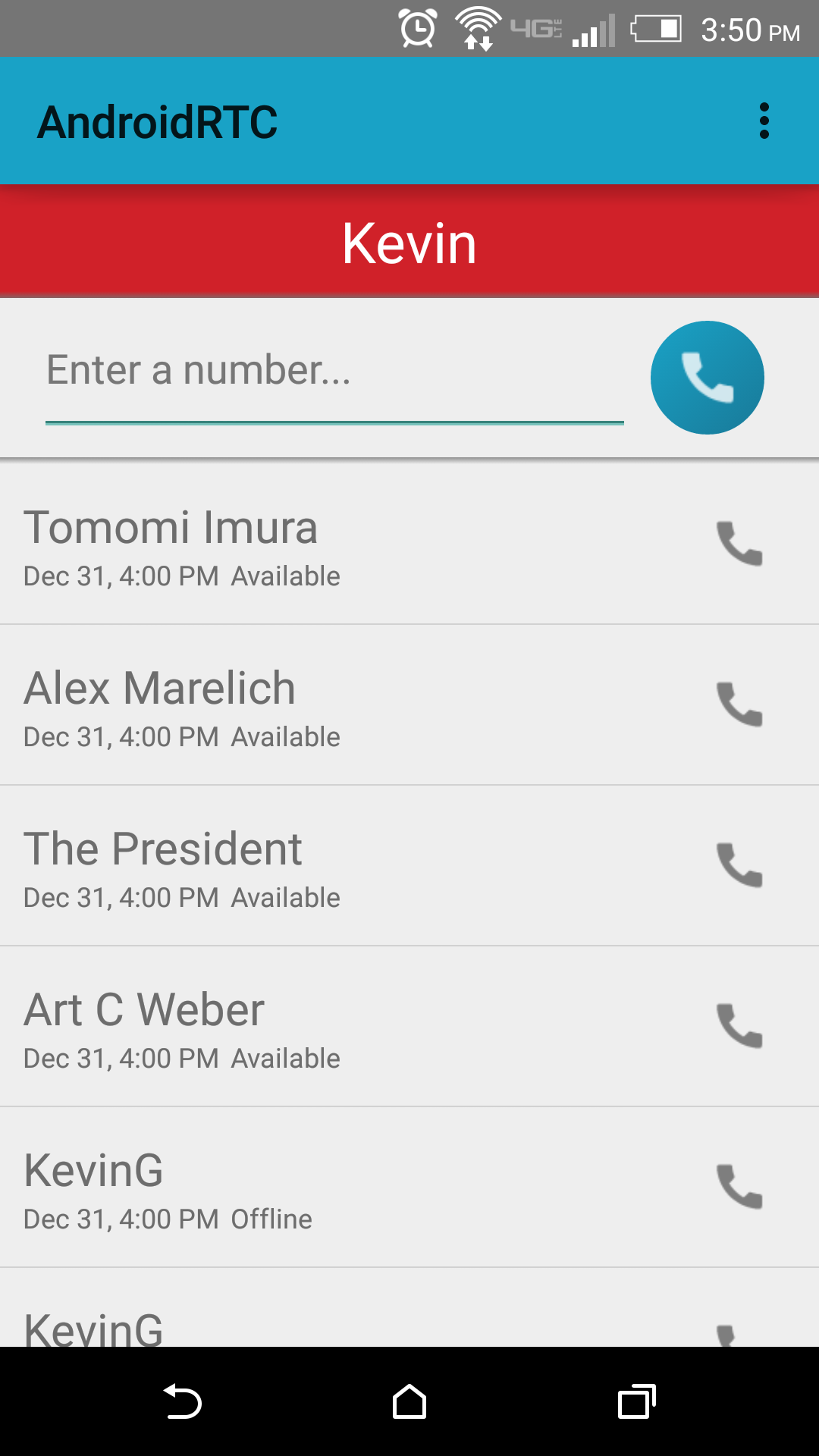 An example of native WebRTC on Android using PubNub's Android SDK signaling.