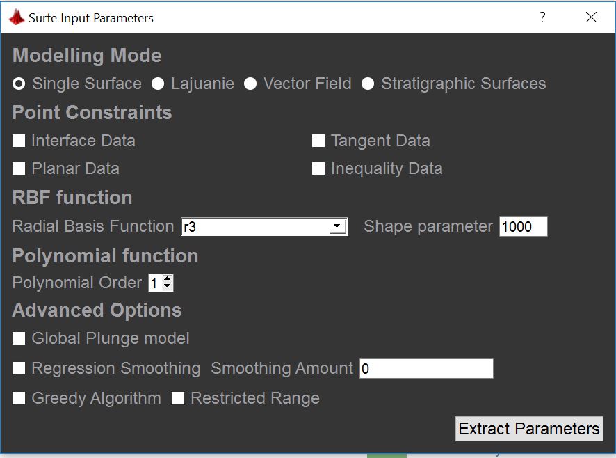 - This is a library for the SURFE algorithm that implements generalized interpolation using multivariate and scattered structural geologic constraints. It accepts 4 types of constraints: inequalities, interface, planar, and tangent points. It computes an interpolant/approximate for the constraints and evaluates that function at the user supplied points.