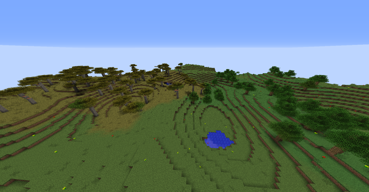 This is a custom made world generator for Minecraft. It is designed to be efficient (about 10 times more efficient than the normal generator), and fitting for Hunger Games gamemodes in the style of MCPVP.