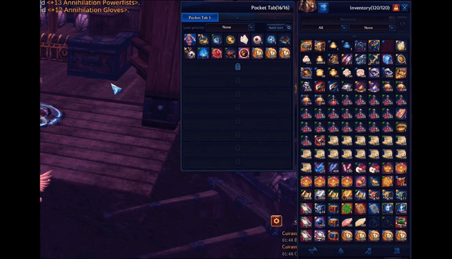 ○ Additionally; If you want to blacklist entire pocket tab, say you want to keep superior items there, don't want them to get banked at all, no matter if they exist in bank or blacklist or not, you can do that using: (case-insensitive)ab bl + pocket1 PocKet2 pocket3ab bl - pocKET1 pocket2 pocket3