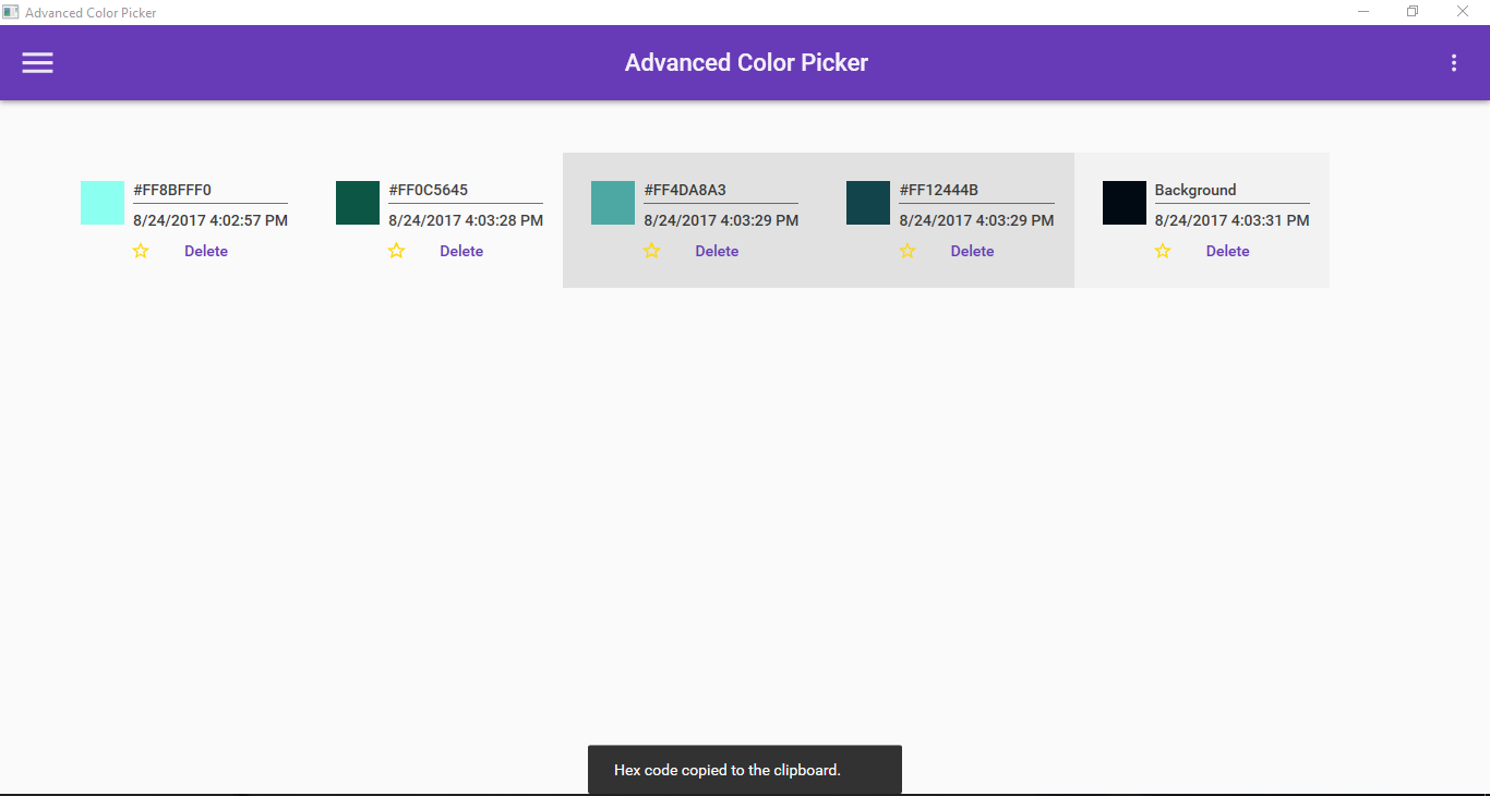 Advanced Color Picker A color picker tool that lets you create groups, see your history; and pick color from an image or screenshot. Features: Zooming and panning Color History Color Groups Naming Colors Screenshot or Image Mode Screenshots