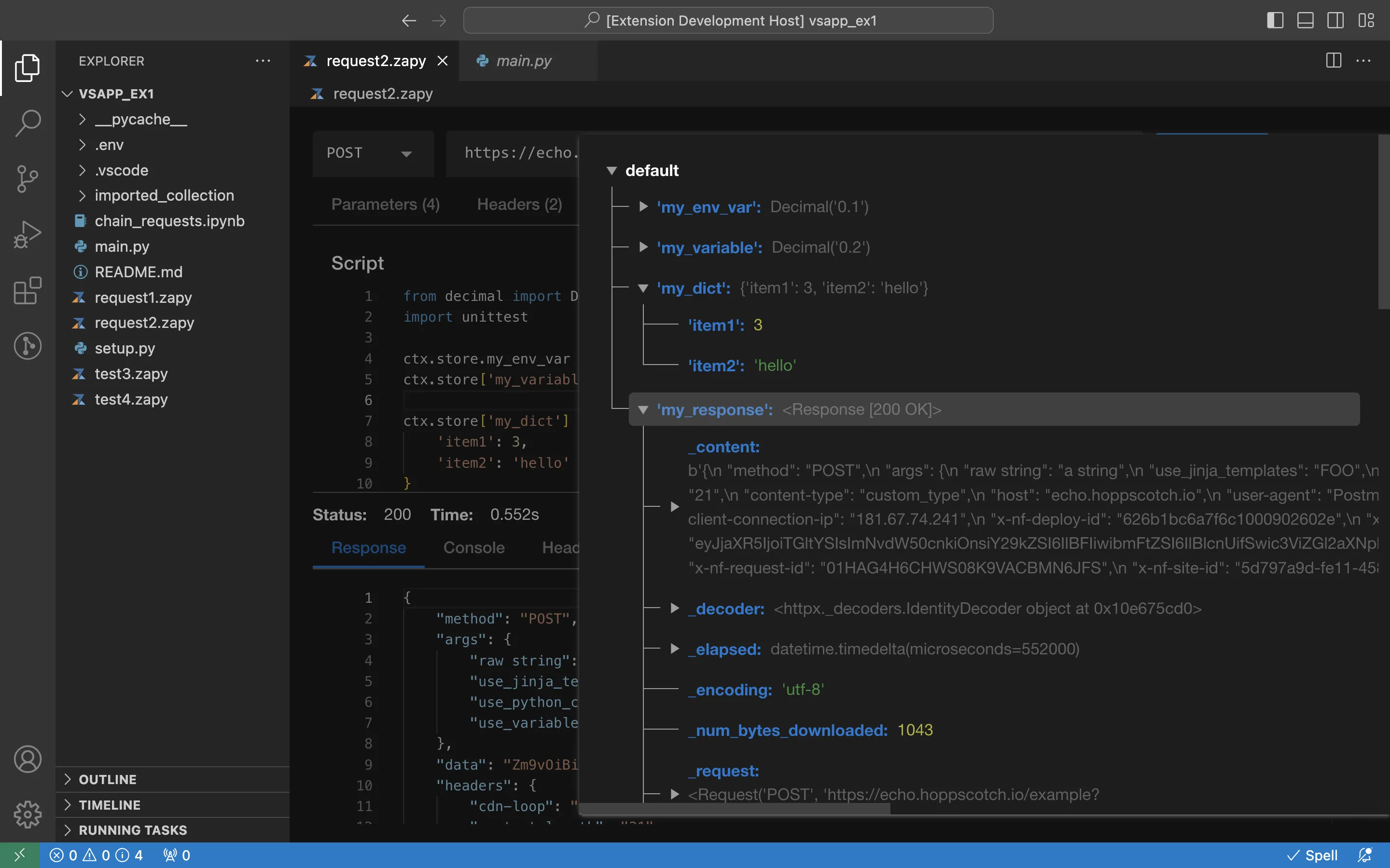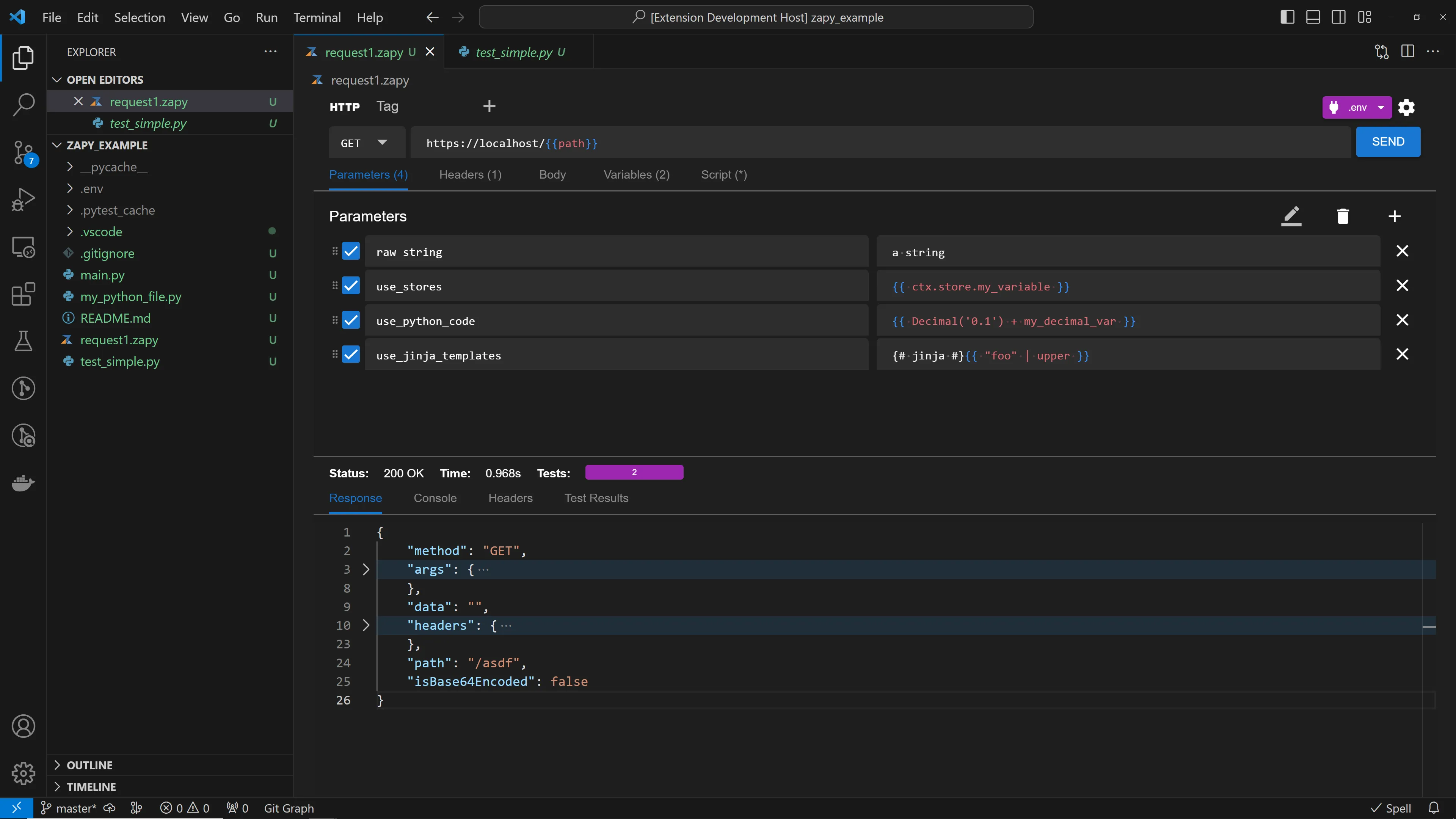 Create requests visually using the Zapy VSCode Extension.
