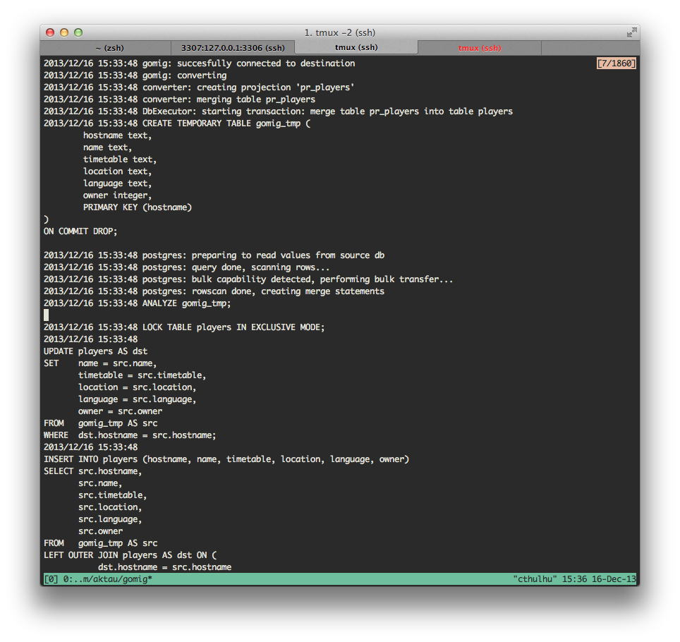 $ go get -u github.com/aktau/gomigOf course, with Go it's quite easy to just build binaries so that everyone can run it without needing anything but the standard C runtime (which is basically installed everywhere). But I'm not doing that just yet. I might do that if there's interest though.
