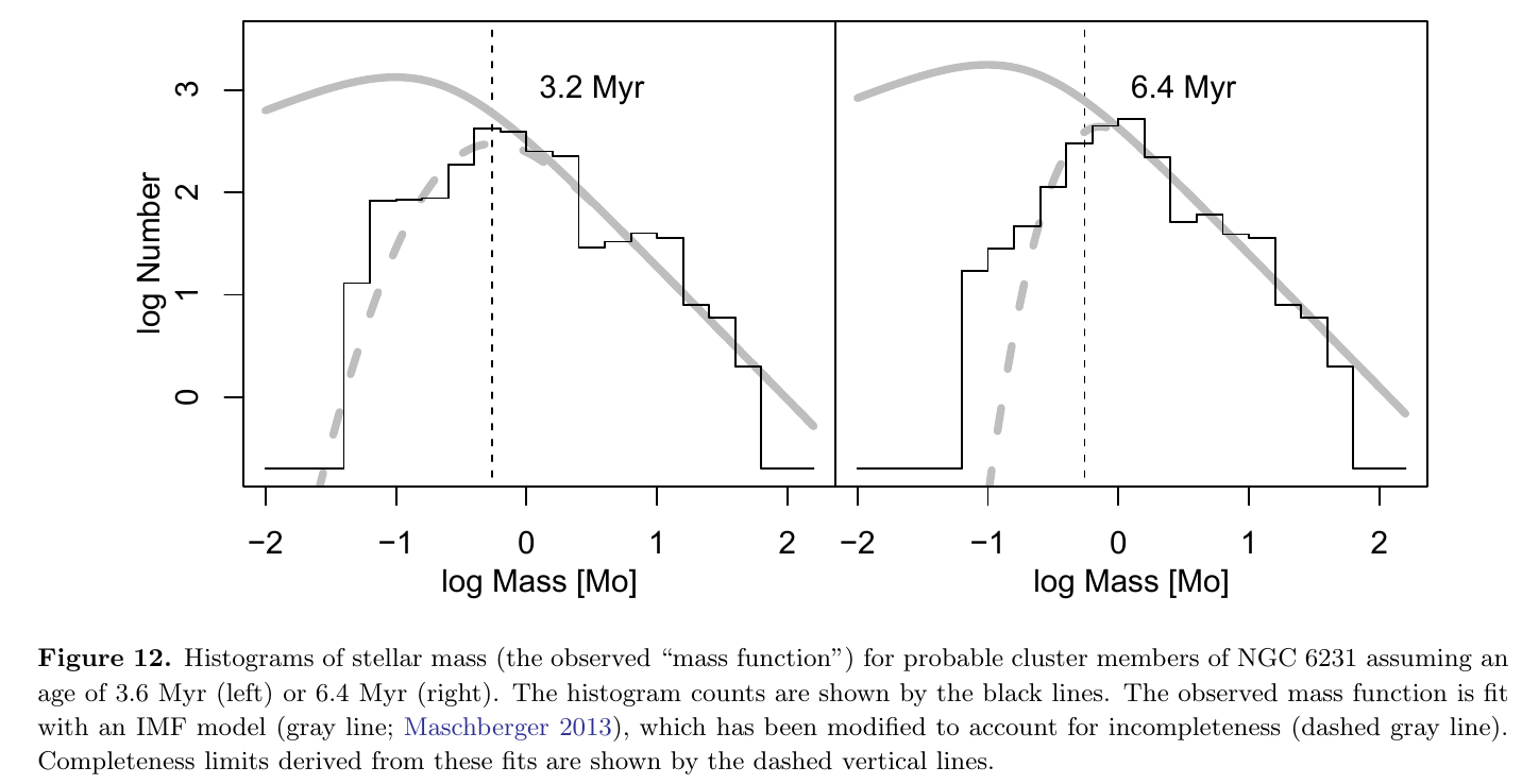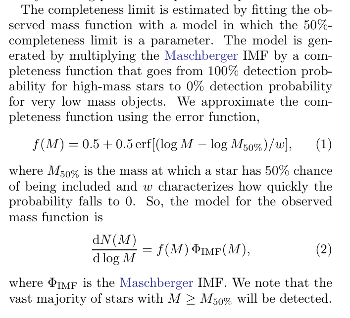The article 'The Structure of the Young Star Cluster NGC 6231. I Stellar Population', Kuhn et al. 2017 fits a Maschberger (2013) IMF modified with a completeness function: