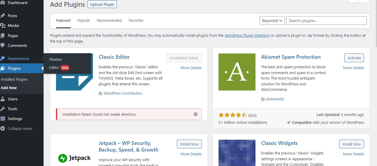Hi there, I installed WordPress, when I am going to add plugins it asks for FTP details, when I add the define( 'FS_METHOD', 'direct' ); in the wp-config file, it's showing me "Installation failed: Could not create directory" in plugins section, kindly tell me how I can resolve the issue.