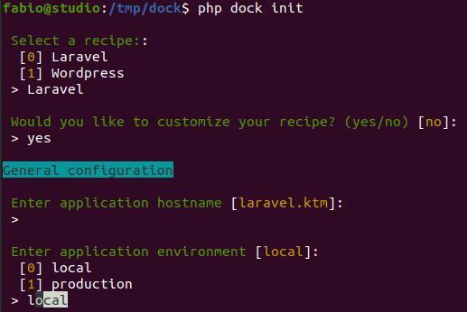 php dock initthe system will let you choose a list of recipes: