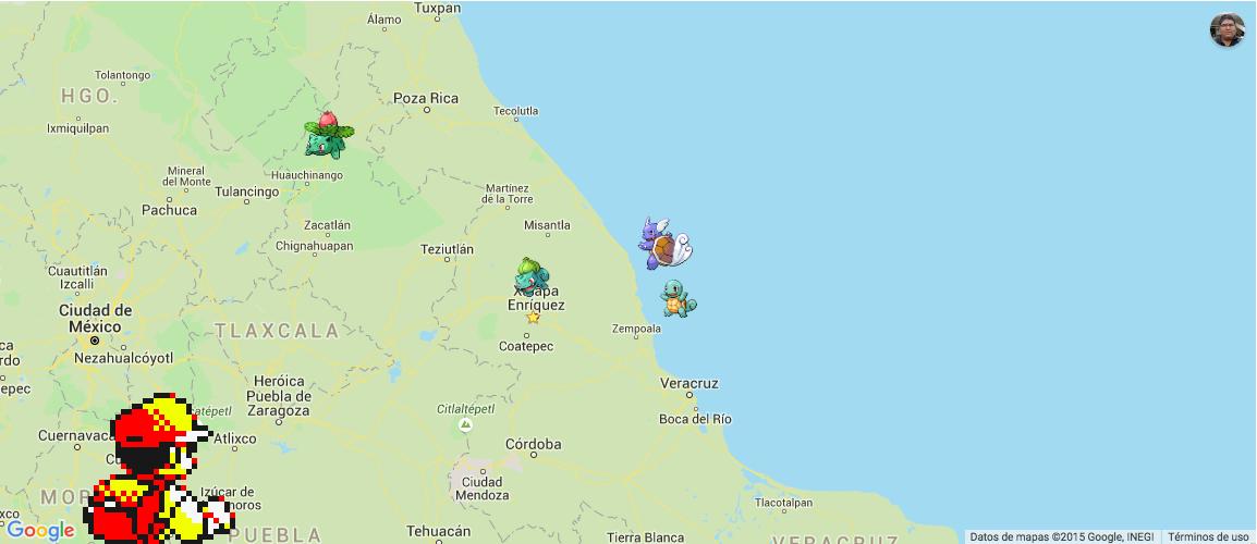 PokeMap In this sample show how foward using the arrow key(up), the pokemons show themself when are in the bounds of Map and the minimum zoom required is 8 See the [demo] (http://dezkareid.github.io/PokeMap/)
