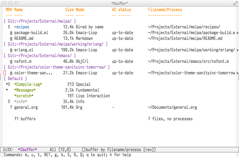 That's where ibuffer-vc comes in: it lets you: