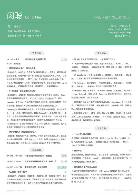 PS: 大部分 HTML/JS 的中文支持都不是问题,因此截图并不全是中文简历。