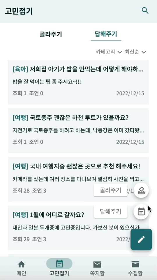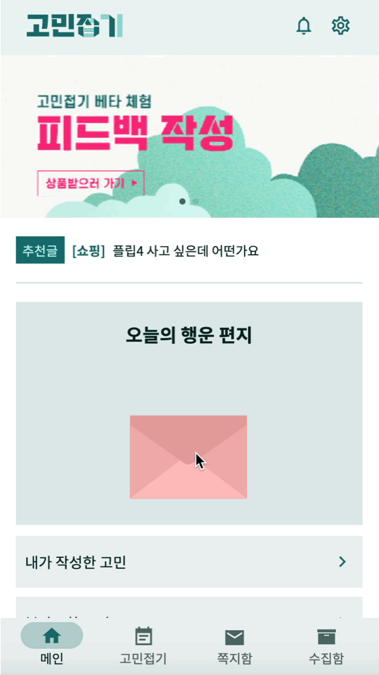 | 매일 색다른 행운의 편지열기 | 골라주기 작성 후 투표 | 답해주기 작성 및 의견받기 |