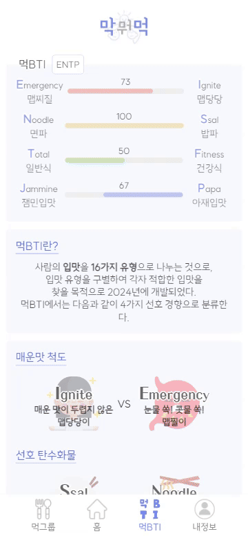 - 음식 선호도 및 먹은 음식 기록을 토대로 취향에 맞는 메뉴를 추천한다.