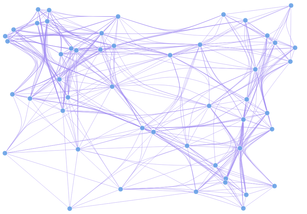 Creates a bundled graph of points with coordinates given in x and y vectors, with connection given in matrix connectivity matrix. Lines on this graph are stacked a bit more than in the graph function.