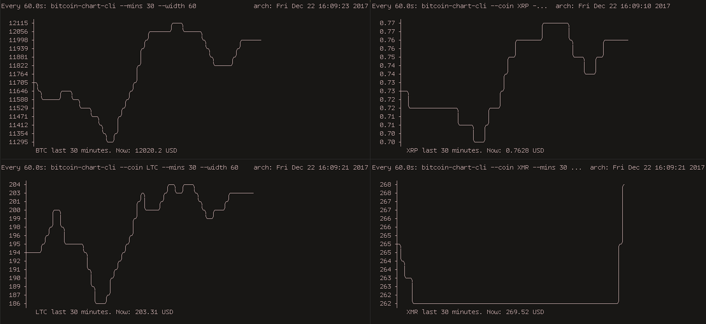 -h, --help                            display help for commandbitcoin-chart-cliCreate terminal splits (tmux) with watch for live charts the unix way