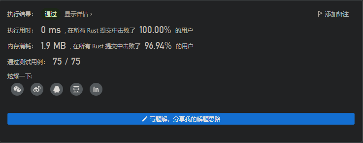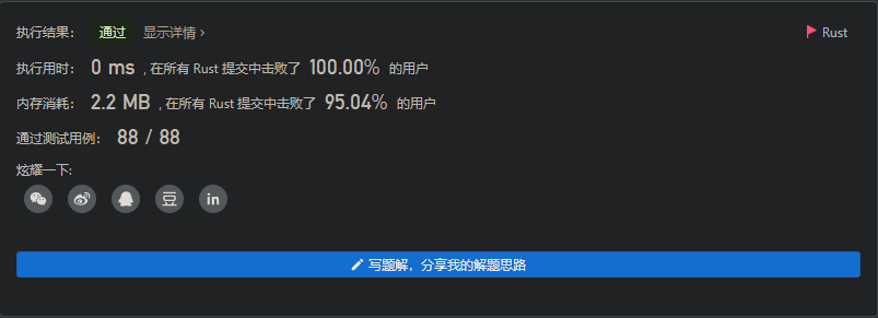 }至于collect是将一个迭代器迭代的所有元素组合成一个新的集合,所以很多题目里面会有s.chars().collect(),就是将这个字符串转换过来成其他语言可以直接遍历的那种形式。