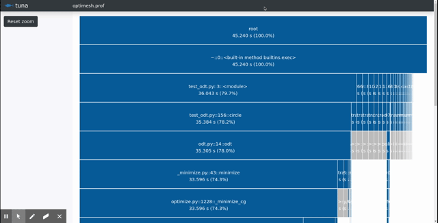 tuna is a modern, lightweight Python profile viewer inspired by SnakeViz. It handles runtime and import profiles, has minimal dependencies, uses d3 and bootstrap, and avoids certain errors present in SnakeViz (see below) and is faster, too.