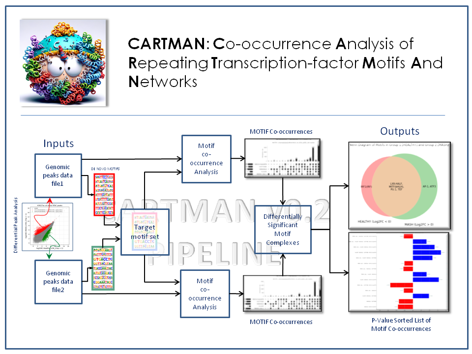 Co-occurrence Analysis of Repeating Transcription-factor Motifs and Networks. A computational tool for motif discovery and transcription factor co-occurrence analysis in regulatory genomics. π GitHub Repository |