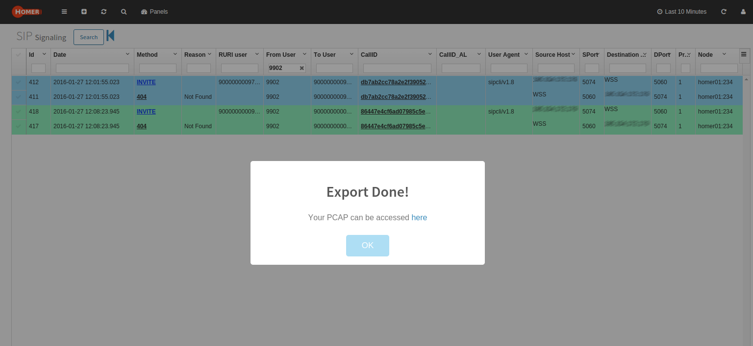 The HOMER UI will return a direct link to the Cloudshark session, ready to share with Customers!