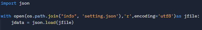 transmit information in setting.json: use jdata[key] and insert the following coding on top of your code