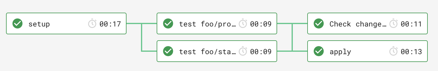 The following screenshot represents multiple Terraform configuration which are managed at a monorepo are tested in parallel.